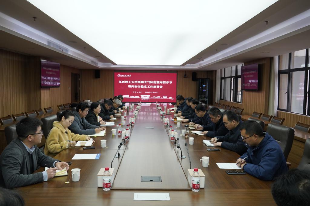 在三江校区濂溪楼三楼2号会议室召开寒潮天气防范暨寒假春节期间安全稳定工作部署会,校党委书记杨斌主持会议并讲话,校党委常委、副校长熊志华及相关职能部门负责人出席会议。