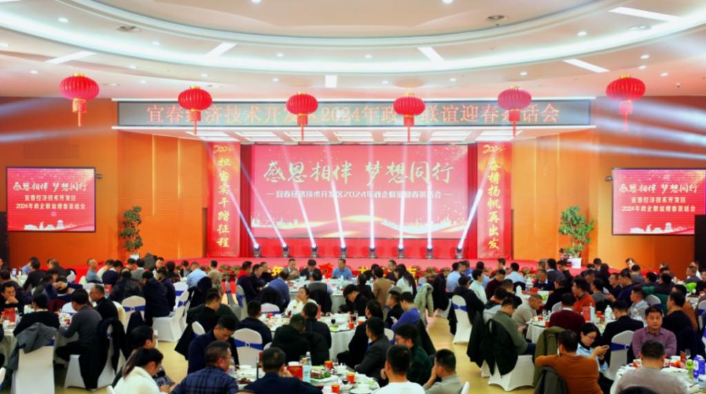 期间,罗仙平一行还受邀参加了宜春市经开区2024年政企联谊迎春茶话会。茶话会上,宜春经开区与园区企业代表和社会各界代表欢聚一堂,畅叙友谊、共话发展。其中,宜春时代、星宜汽车、新世界置业、六和电子等企业代表作了发言;来自园区各有关单位、学校和企业选送的节目精彩纷呈,赢得了大家的热烈掌声。
