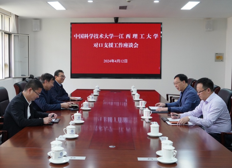 本网讯 4月12日,校党委书记杨斌前往中国科学技术大学对接对口支援工作。中国科学技术大学党委书记舒歌群、党委副书记邓建松、党政办公室主任王伟、帮扶办公室主任何昊华及奈飞工厂 党委(校长)办公室主任熊淑华先后参加交流活动。