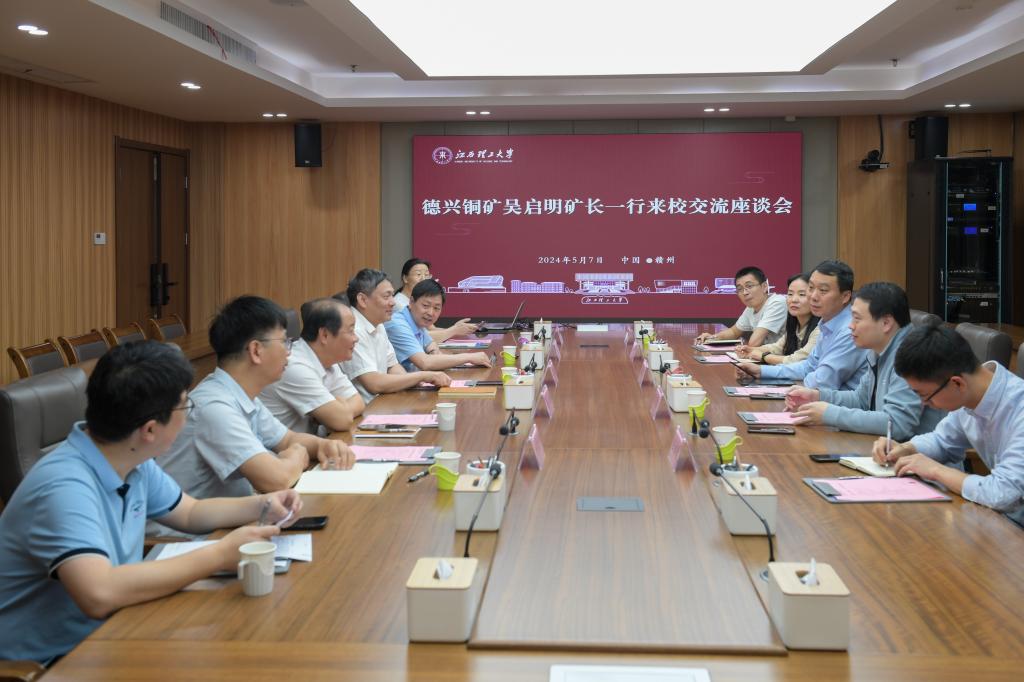的基本情况。他表示,学校坚持立德树人的根本宗旨,围绕钨、铜、稀土、锂四大资源服务国家战略,着力服务江西经济社会发展并取得了切实的成效。学校与江铜集团特别是德兴铜矿有着深厚的感情基础,希望彼此充分发挥各自优势,进一步加深更深层次的合作,促进双方事业的共同发展。
