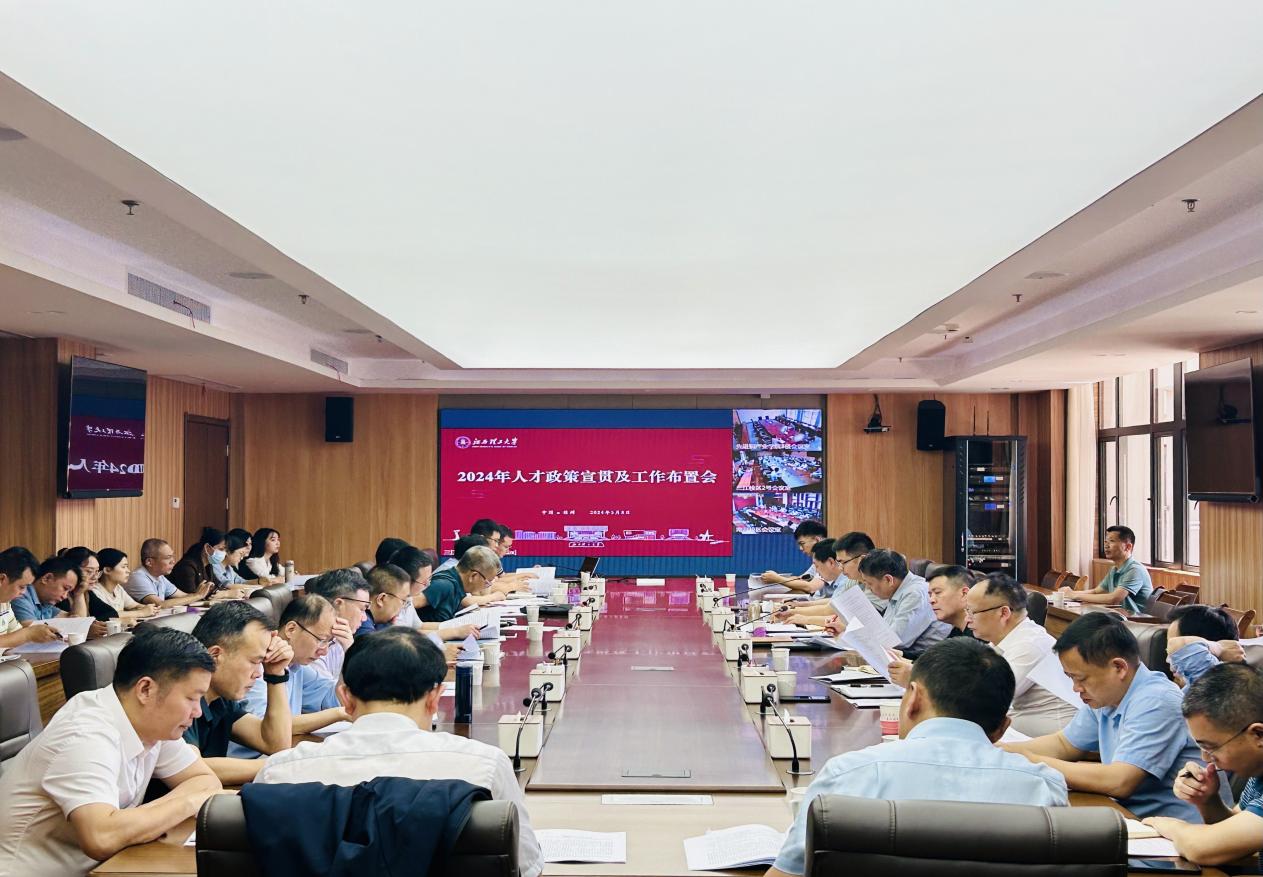 学校人事处、科学技术处传达学习了上级有关人才政策精神,通报了2024年上半年各学院(部)引才情况,并部署了下一阶段人才重点工作。