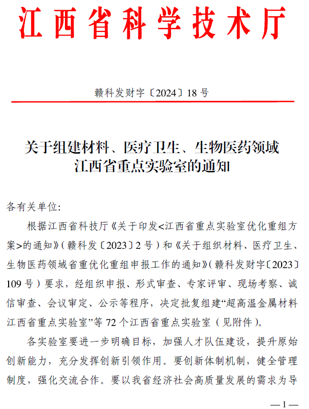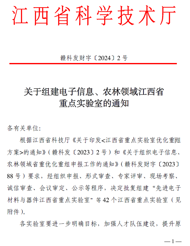 本网讯 近日,江西省科技厅下发了《关于组建电子信息、农林领域江西省重点实验室的通知》(赣科发财字〔2024〕2号)和《关于组建材料、医疗卫生、生物医药领域江西省重点实验室的通知》(赣科发财字〔2024〕18号),奈飞工厂 申报的多维智能感知与控制江西省重点实验室、功能晶态材料化学江西省重点实验室、金属磁性材料及器件江西省重点实验室、高性能钢铁合金材料江西省重点实验室获批组建。