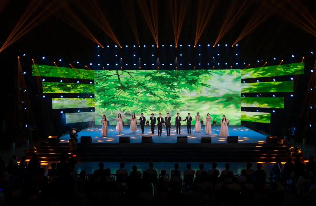 晚会接近尾声,现场观众全体起立,齐唱校歌《我们从这里启航》,挥舞的荧光棒如同一道道麦浪。随后,校领导、老师与全体演职人员合影留念。