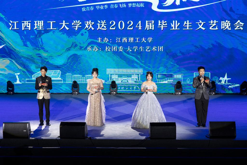 欢送2024年毕业生文艺晚会在三江校区体育馆、南昌校区大礼堂举行。在家校领导、校党委常委,各职能部门、学院负责人,教师代表及2024届毕业生现场共同观看晚会。活动预告一经发出,受到了校内师生广泛关注,线上直播观看人数近6万人次。晚会现场座无虚席,千余名师生欢聚一堂,毕业的氛围达到高潮。