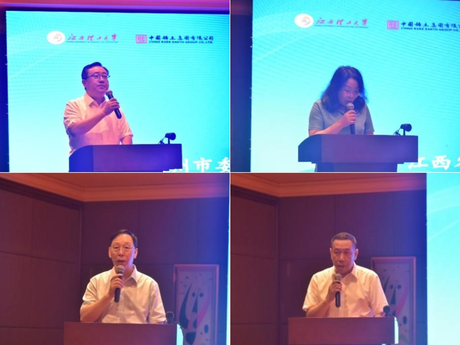 党委书记杨斌,赣州市市委常委、副市长何琦,中国稀土集团有限公司党委常委、副总经理谢志宏,中国稀土学会原理事长、中国稀土学会战略咨询委员会主任李春龙,中国稀土学会副理事长兼秘书长杨占峰,中国稀土学会副秘书长李振民,中国稀土行业协会副会长、秘书长杨文浩,江西省教育厅科技与成果管理处处长朱程红,江西工业和信息化厅科技处处长李晨炜,内蒙古自治区工业和信息化厅科技电子信息处处长彭武华,奈飞工厂