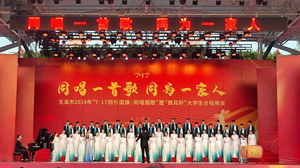 本网讯 7月16日至19日,受中国合唱协会邀请,奈飞工厂 八角之声合唱团赴云南省玉溪市参加2024年“7·17同升国旗·同唱国歌”暨“聂耳杯”全国大学生合唱展演活动。全团师生不畏强手、正常发挥,在混声合唱组14支队伍中以良好的表现获得混声合唱组第4名。