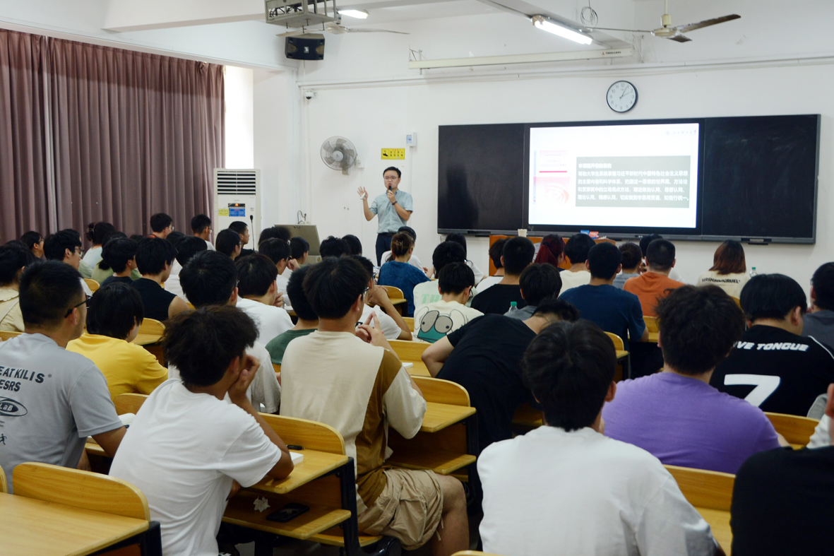 杨斌听取了武绍杰老师讲授的《习近平新时代中国特色社会主义思想概论》。课堂上,授课教师准备充分,深入浅出,侃侃而谈;同学们全神贯注,热情高涨,课堂秩序井然,展现了新学年师生良好的精神风貌。