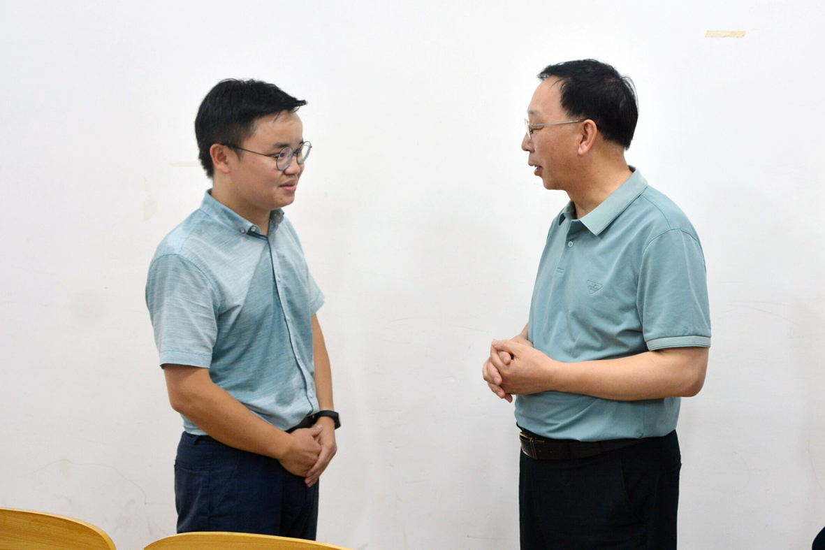 杨斌认真记录授课内容,课后与武绍杰老师进行了交流,对课堂上丰富的教学内容、认真的教学态度,以及多样的教学方式表示肯定,同时就教学设计、课程思政、教学方法等方面提出了建议。杨斌还了解了武绍杰的日常工作情况,鼓励他作为青年教师再接再厉,继续探索更多学生喜爱的教学方法,不断提升思政课教学质量,筑牢大学生意识形态主阵地,当好青年学生健康成长的引路人。
