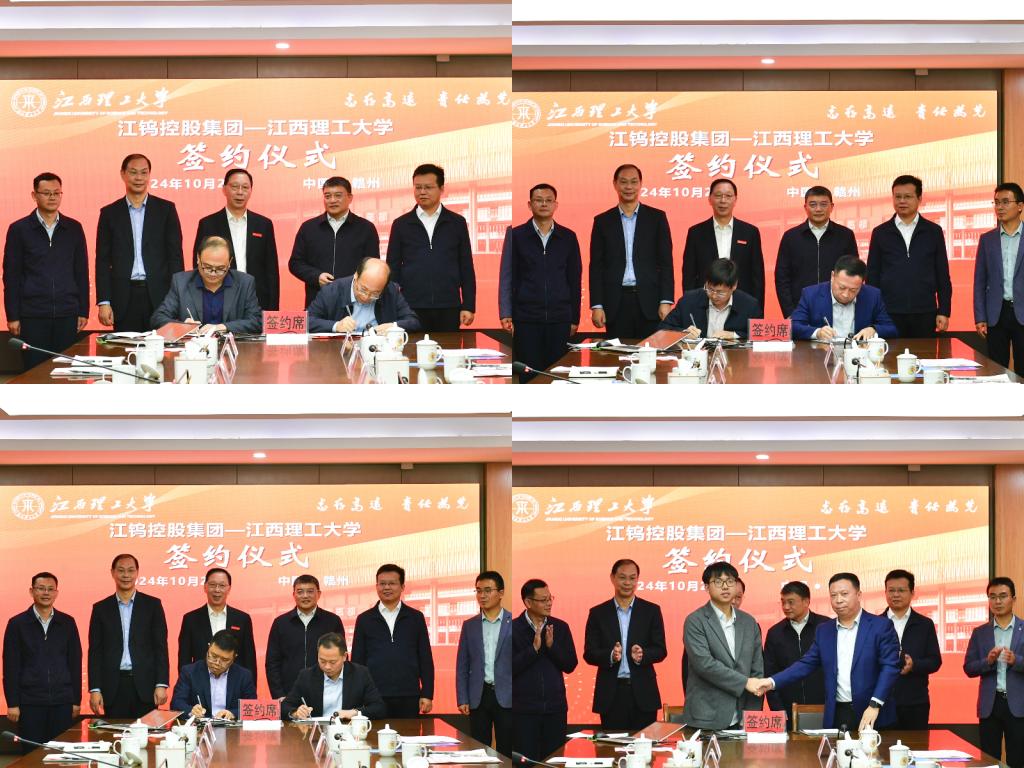 与江钨控股集团有限公司签署战略合作协议,进一步深化产学研合作,推动人才、科技等方面合作事项落地见效。江钨控股集团有限公司党委书记、董事长林榕,副总经理刘恒嵩,校党委书记杨斌,校党委常委、副校长廖春发,校党委常委、宣传部部长盛晓明出席签约仪式。