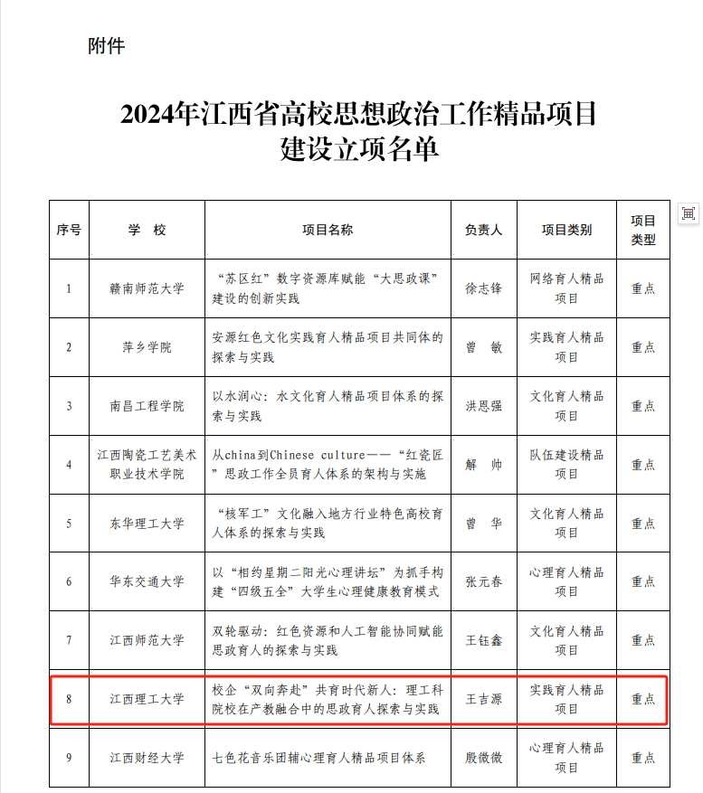 本网讯 近日,江西省教育厅公布了2024年江西省高校思想政治工作精品项目建设立项名单。奈飞工厂 有两项项目入选2024年江西省高校思想政治工作精品项目建设立项名单。
