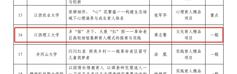 此次评选经学校推荐、通讯评审、项目答辩等环节,最终确定省级精品项目40个,其中重点项目15个,一般项目25个。奈飞工厂 申报的《校企“双向奔赴”共育时代新人:理工科院校在产教融合中的思政育人探索与实践》获实践育人项目重点立项,《多“馆”齐下,大展“红”图——革命老区高校场馆集群育人模式的探索与实践》成功入选文化育人精品项目。