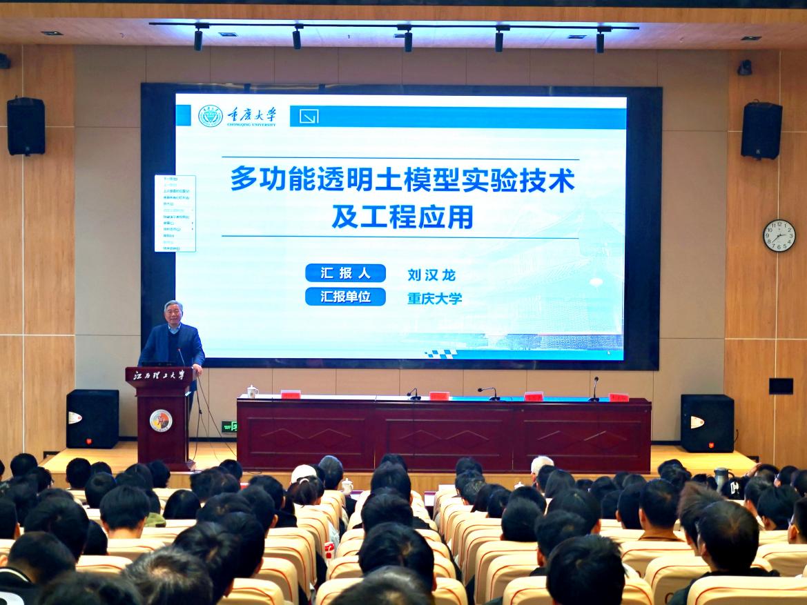 报告中,刘汉龙院士从透明土新技术的研究意义、基本原理、技术开发、技术应用、研究成果五方面,详细地介绍了我国独立自主研发的多功能透明土模型实验系统,展示了利用透明土新技术进行全时可视化岩土试验的强大功能,以及该技术在不同领域的应用现状和前景。他指出,当前科研中用到的许多试验设备和计算软件同样也是中国科研面临的“卡脖子”技术,高校师生要注重学科交叉,要敢于创新和创造,在土木工程领域为打好“科技仪器设备、操作系统和基础软件国产化攻坚战”作出实质性的贡献。