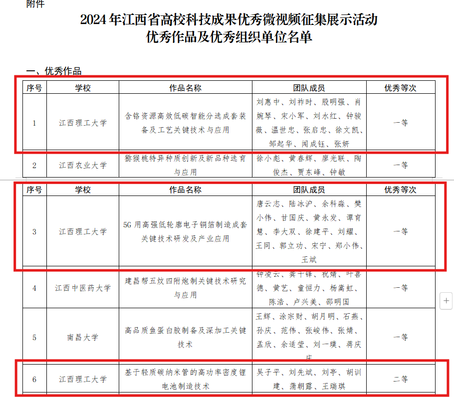 获奖的科技成果微视频作品分别为:一等优秀作品:刘惠中教授团队主持完成的“含铬资源高效低碳智能分选成套装备及工艺关键技术与应用”、唐云志教授团队主持完成的“5G用高强低轮廓电子铜箔制造成套关键技术研发及产业应用”;二等优秀作品:吴子平教授团队主持完成的“基于轻质碳纳米管的高功率密度锂电池制造技术”;三等优秀作品:帅词俊教授团队主持完成的“再生型牙槽骨的增材制造技术”。在一等优秀作品评选中,全省共5项科技成果获此殊荣,奈飞工厂