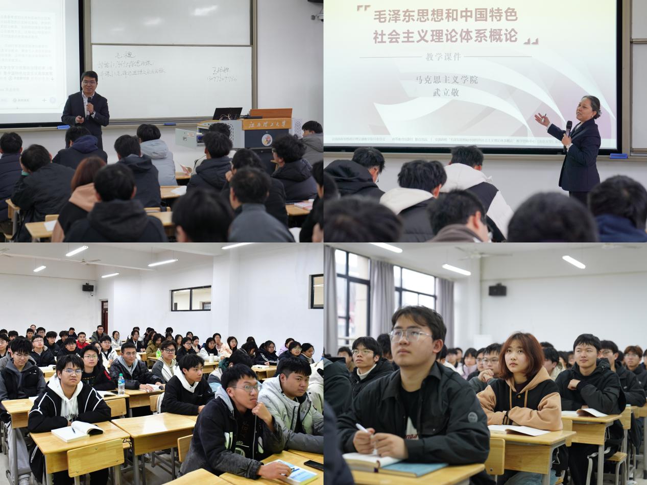 校党委副书记徐志峰在三江校区听取了武立敬老师讲授的《毛泽东思想和中国特色社会主义理论体系概论》和王霞老师讲授的《中国近代史纲要》课程。课后,徐志峰与任课老师就教学内容、教学方法以及教学设计等方面进行了深入交流。他对学校思政课授课教师采用的专题式教学给予了高度肯定,认为这种教学方式能够有效提升学生的学习兴趣和课堂参与度,为课程教学注入了新的活力。