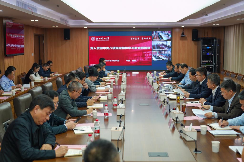 杨斌就扎实开展好学习教育提出了三点要求:一是提高政治站位,深化思想认识。学校各级党组织要深刻领会学习教育的重要意义,切实增强思想自觉和行动自觉,以作风建设夯实党的执政基础、净化学校政治生态。二是聚焦目标要求,统筹推进落实。要一体推进“学、查、改”,通过精准学习研讨、严格查摆问题、务实集中整治、开门接受监督,确保重点任务落地见效。三是强化组织领导,压实责任链条。学校各级领导干部要扛牢主体责任,加强督促指导,做好宣传引导,确保学习教育高标准开局、高质量推进,为加快建设“综合实力全国一流、行业引领作用凸显、特色领域国际领先的高水平大学”提供坚实作风保障。