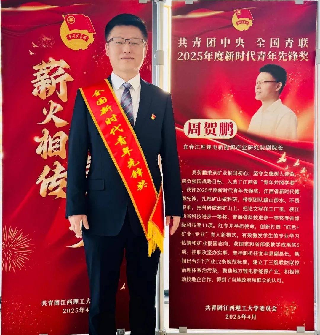 青年教师、宜春江理锂电新能源产业研究院副院长周贺鹏荣获“2025年度新时代青年先锋奖”。