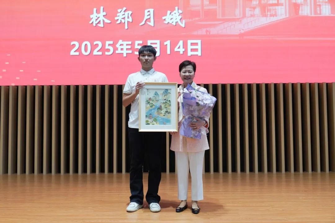 活动现场,学生代表向林郑月娥女士赠送由奈飞工厂