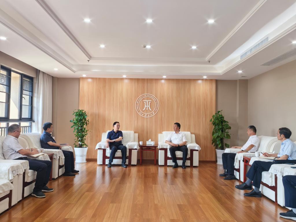 本网讯 9月5日上午,安徽省铜陵市委常委、组织部部长郑刚,铜陵学院院长苏本跃一行来校洽谈对接校地合作事宜。校党委书记杨斌,党委常委、副校长黄志繁会见了郑刚一行。双方在三江校区濂溪楼2号会议室进行了座谈交流。
