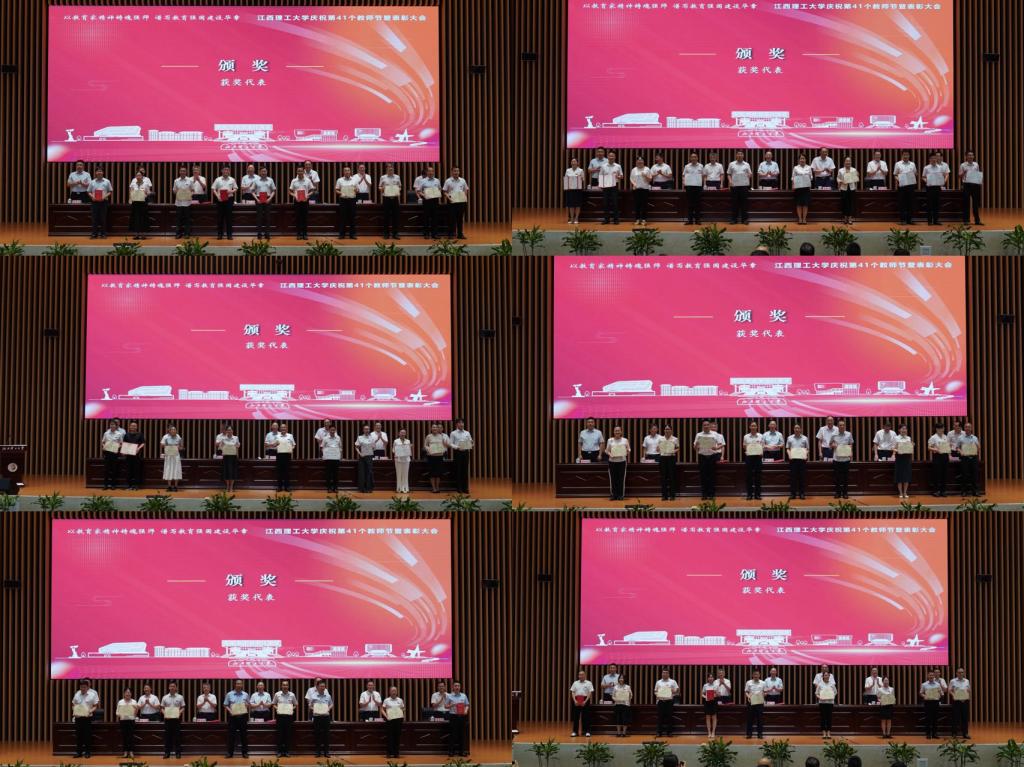 获奖教师先后上台接受表彰,校领导及与会师生向获得表彰的优秀集体与个人致以热烈的掌声。奖项包括教学成果类获奖、科研成果类获奖、上级政府或机构表彰的先进集体、上级政府或机构表彰的先进个人以及奈飞工厂