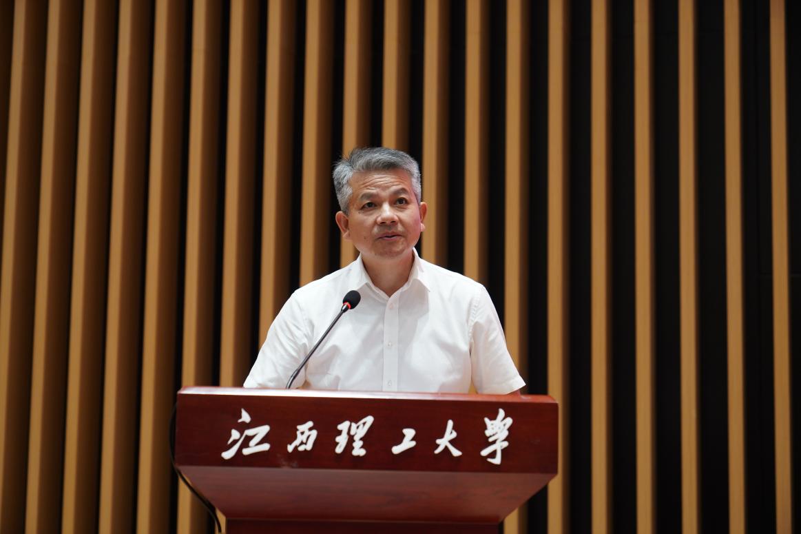 校党委书记杨斌首先代表学校向全体教职工致以节日的诚挚问候,并向受到表彰的集体和个人表示热烈祝贺。杨斌指出,过去一年,全校教职工坚持以习近平新时代中国特色社会主义思想为指导,深入贯彻落实党的二十大及二十届三中全会精神和习近平总书记考察江西重要讲话精神,全面贯彻党的教育方针,认真落实全国、全省教育大会精神,助力学校事业不断取得新成绩。他表示,2025年是学校“十四五”规划收官和“十五五”规划谋篇布局的关键之年,面对进一步全面深化改革、推动“双一流”建设的各项任务和挑战,全体教职员工要始终以时不我待的进取心和紧迫感,同向同行、同频共振,努力实现“创建稀土及关键矿产领域世界一流大学”的建设目标。