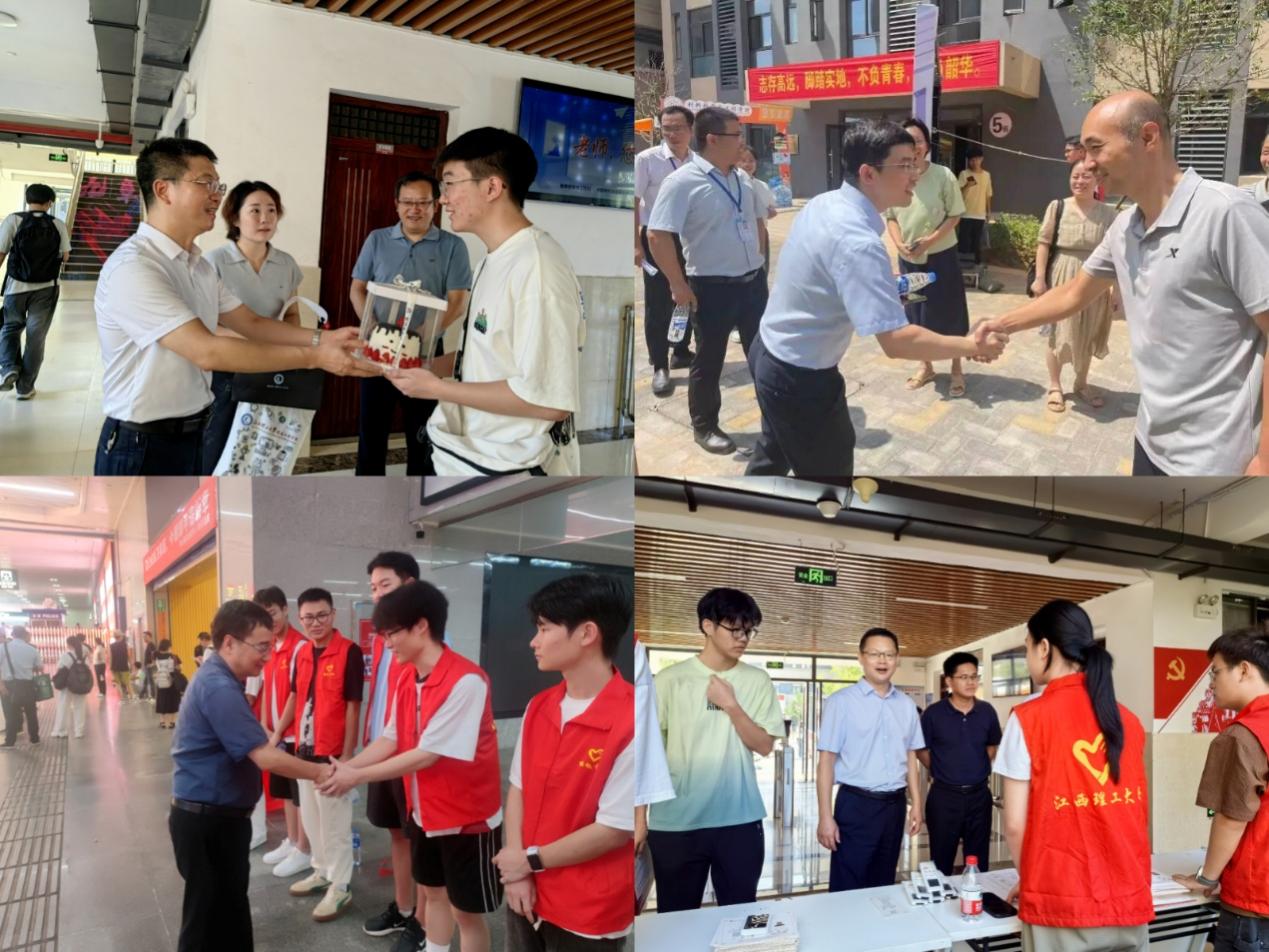 在高铁站、火车站及学校迎新报到点,校党委常委、副校长黄志繁、熊志华细致了解了各学院报到情况,亲切慰问了忙碌在一线的工作人员与志愿者们,对他们的热情服务和无私奉献表示充分肯定,勉励大家以饱满的状态做好新生入学的“第一站”服务,充分展现江理师生的良好风貌。