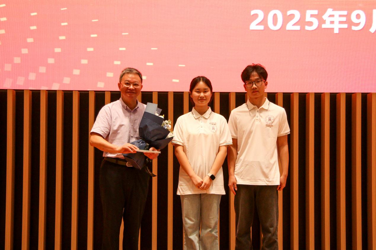 最后,学生代表向严纯华赠送人民音乐出版社出版的《点燃青春——中国古诗词合唱系列》CD唱片与鲜花,对他的精彩报告致以真挚的感谢。