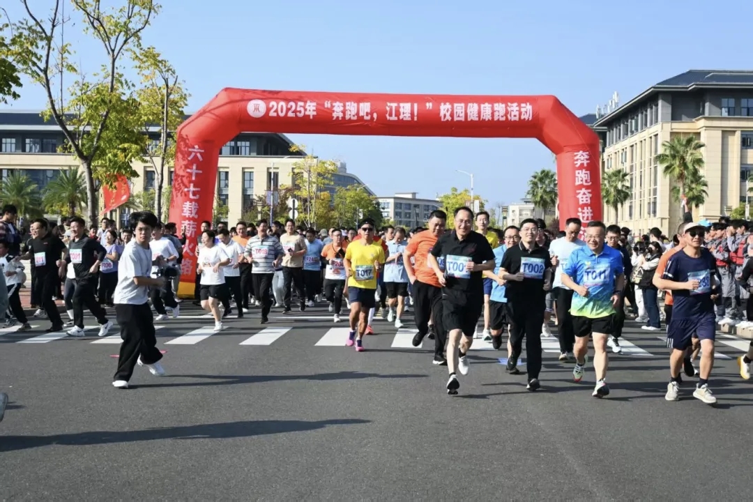正式比赛前,江理啦啦操队率先登场,用活力四射的热舞瞬间点燃全场氛围,让每一位参赛者与志愿者都热血沸腾,热身带操结束后,校党委书记刘祖文宣布开跑,发令枪响,现场参赛人员满怀热情迈开步伐!