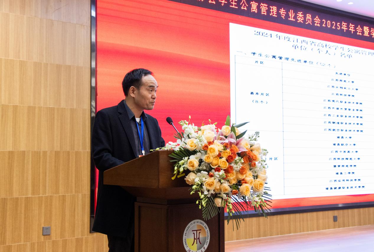 琚烈勇传达教育部、中国高校后勤协会、全国寓专会、省高校后勤协会有关会议精神,对2023—2025年江西省高校后勤协会学生公寓管理专业委员会的工作进行了总结汇报,对2026年推进的工作计划要点进行了部署。他指出,省寓专会及高校宿管战线将在中国教育后勤协会、全国寓专会、省高校后勤协会的指导下,充分发挥行业纽带与引领作用,着力把学生公寓建设成为落实立德树人根本任务、深化“三全育人”的重要阵地,共同书写江西高校学生公寓事业高质量发展的新篇章。