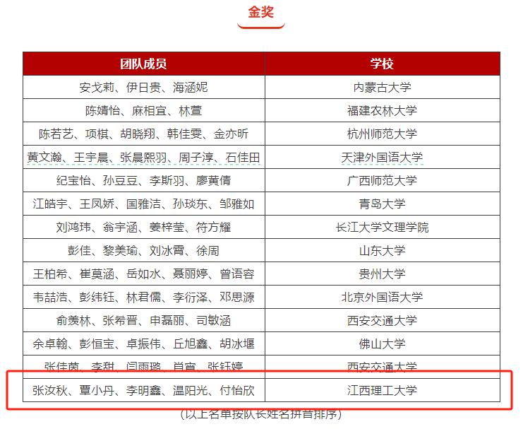 外国语学院张汝秋、覃小丹、李明鑫、温阳光、付欣怡组成的团队凭借《“围”合天下》短视频,聚焦赣南围屋的文化讲述摘得国赛金奖。