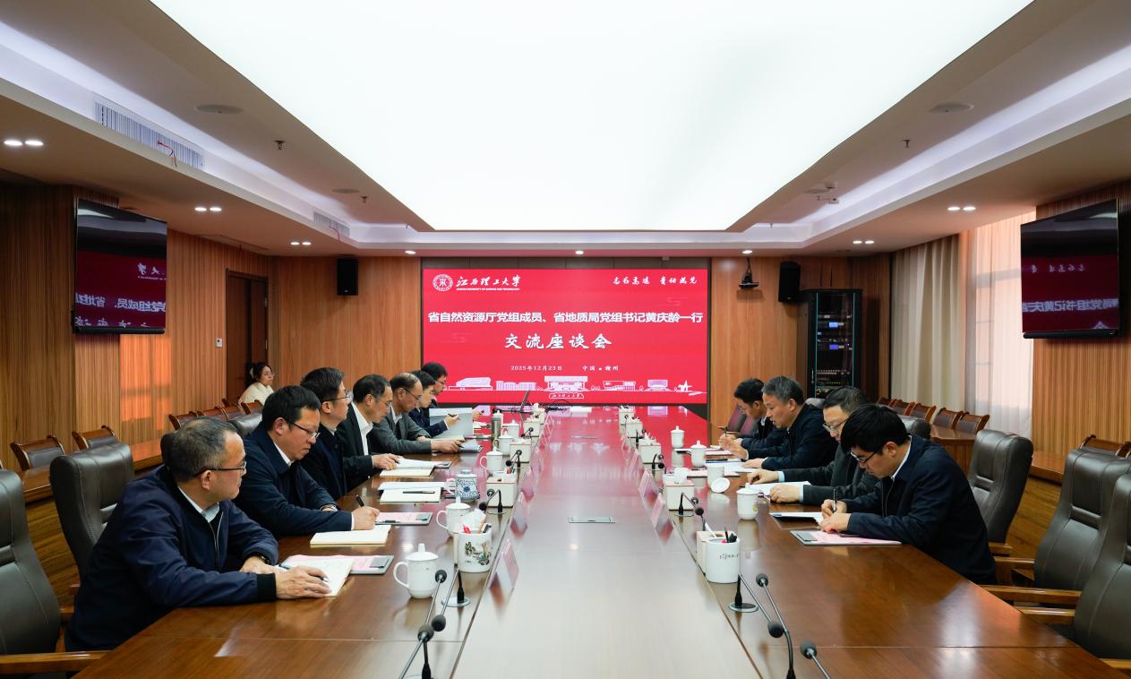 刘祖文对黄庆龄一行的到来表示欢迎,对省地质局长期以来为学校事业发展关心支持表示感谢。刘祖文表示,在前期局校合作的基础上,学校将继续发挥学科与科研优势,进一步加强双方在地质矿产领域的交流与合作,共同为江西经济社会发展做出新的更大的贡献。