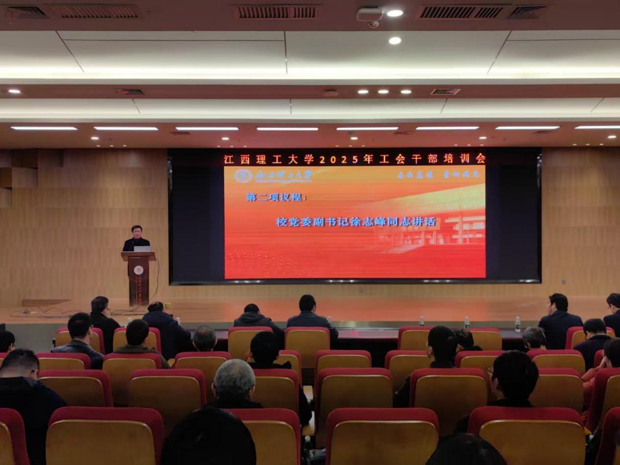 举行2025年工会干部培训会。校党委副书记徐志峰出席会议,各分工会主席、福利委员、文体委员、女工委员参加培训,会议由校工会主席余育新主持。
