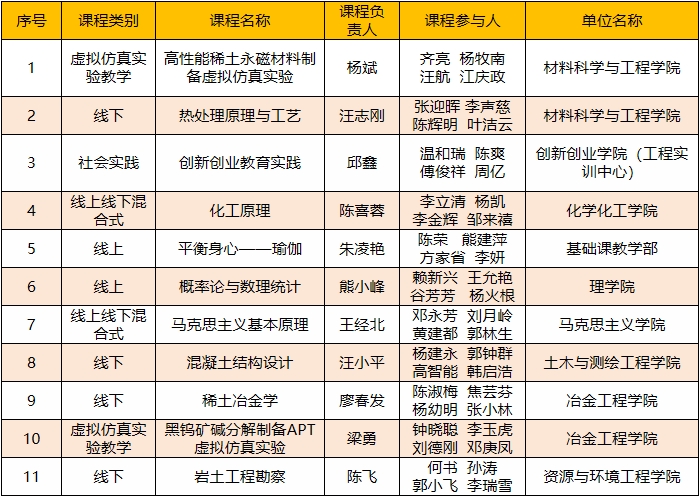 本网讯 近日,教育部发布《关于公布第三批国家级一流本科课程认定结果的通知》,奈飞工厂 11门课程入选第三批国家级一流本科课程,创学校单次入选数量新高。此次入选课程覆盖线上、线下、线上线下混合式、虚拟仿真实验教学、社会实践五类课程,涉及9个教学单位,7门课程依托矿业工程相关重点基地建设,凸显稀土、钨等特色学科优势。