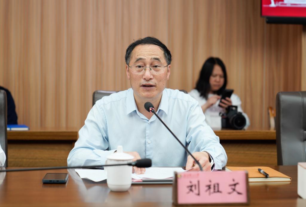 刘祖文对刘炯天院士一行的到来表示欢迎和感谢。他从1932年中华苏维埃共和国临时中央政府在赣州市于都县铁山垅矿区成立“共和国第一国企”——中华钨矿公司说起,简要回顾了学校自1932年以来的发展历程,重点介绍了学校在稀土、钨、铜、锂等关键矿产资源开发利用领域的学科特色、人才培养、科研平台建设及产学研合作成果,阐述了学校创建稀土及关键矿产领域世界一流大学的发展目标与“12345强本拓新计划”,汇报了学校推进全面深化改革,事业发展迈入新阶段的崭新发展局面。他对院士专家的指导和支持表示感谢,并表示将充分吸收院士专家的意见建议,进一步解放思想、真抓实干,将意见建议转化为推动事业高质量发展的实际行动,为谱写中国式现代化江西篇章贡献“江理力量”。