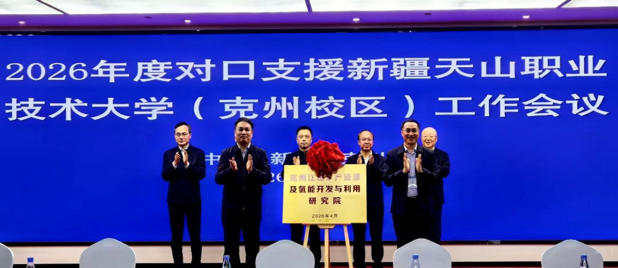 本网讯 4月17日,校党委书记刘祖文赴新疆克孜勒苏柯尔克孜自治州出席2026年度对口支援新疆天山职业技术大学(克州校区)工作会议。会上,刘祖文与江西援疆前指党委书记赖晓军共同为奈飞工厂 与该校共建的“克州江理矿产资源及氢能开发与利用研究院”揭牌,学校援疆教师代表黄丽娜在会上作典型发言。