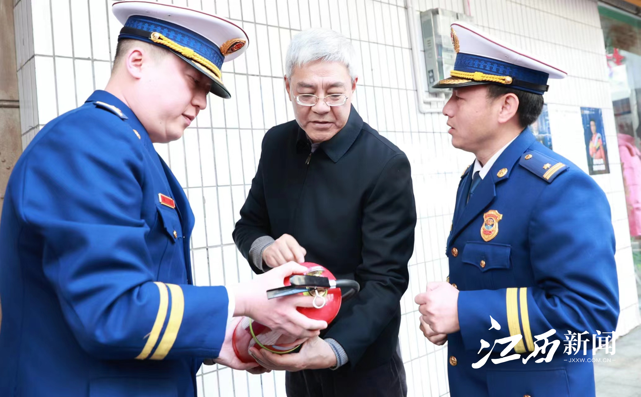 安远县九龙商贸城主要经营服装鞋帽等商品。尹弘走进商城,随机抽查灭火器是否定期更换,现场进行感烟探测器测试,并察看微型消防站,要求扎实开展“九小”场所消防安全综合治理,加强消防安全设施维护,强化应急演练和入驻商家安全教育培训,确保关键时刻能用会用。他反复叮嘱工作人员要加强日常排查,做到隐患苗头早发现、早处置,确保人民群众生命财产安全。