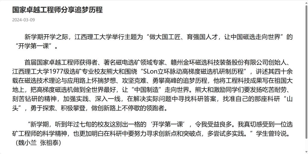 举行主题为“做大国工匠、育强国人才,让中国磁选走向世界”的“开学第一课”。