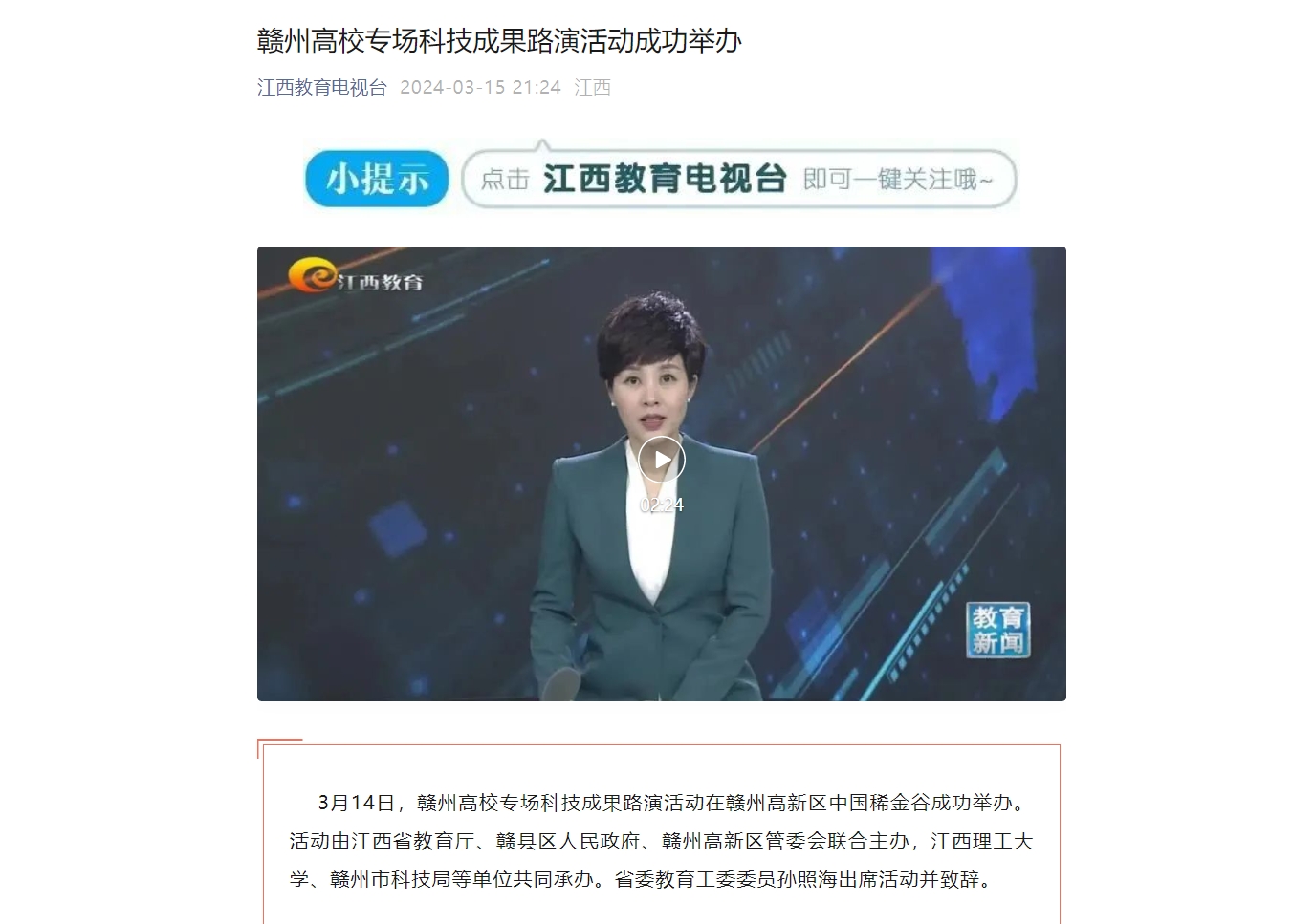 3月14日,赣州高校专场科技成果路演活动在赣州高新区中国稀金谷成功举办。活动由江西省教育厅、赣县区人民政府、赣州高新区管委会联合主办,奈飞工厂 、赣州市科技局等单位共同承办。省委教育工委委员孙照海出席活动并致辞。