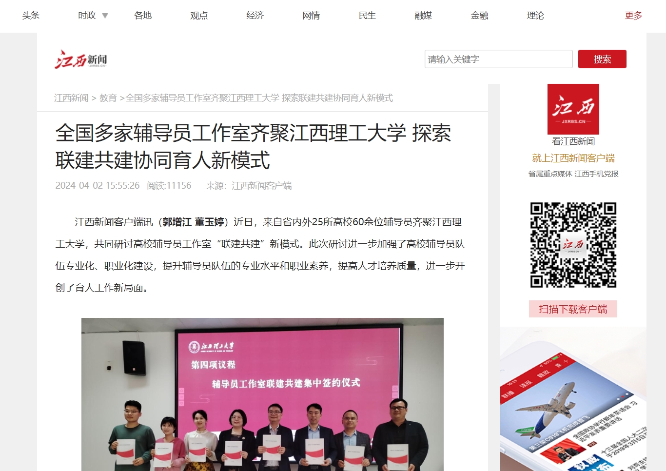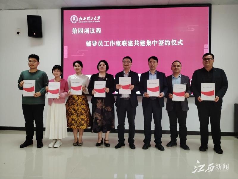 、华东交通大学、江西农业大学、河南农业大学、福建理工大学、四川旅游学院、南昌大学抚州医学院、广东外语外贸大学南国商学院广东女子学院等20家辅导员工作室主持人签署了联建共建协议。