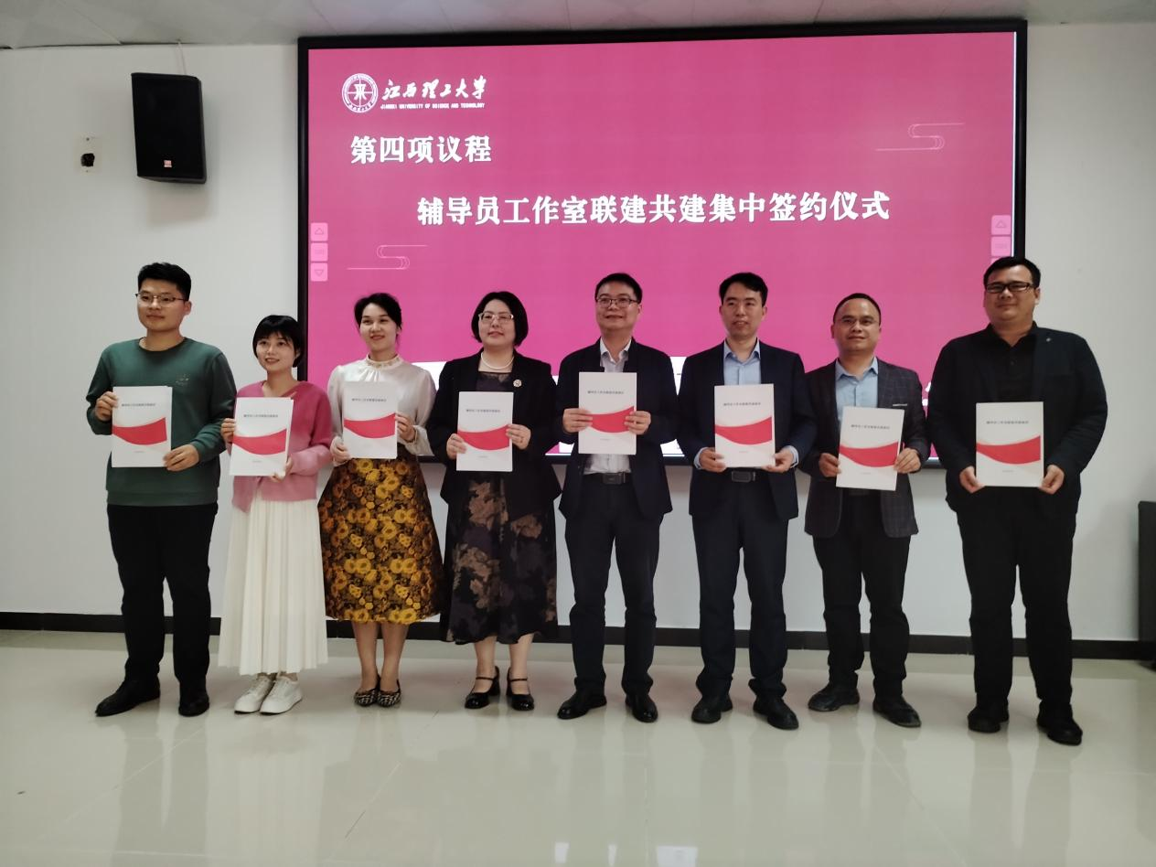 、华东交通大学、江西农业大学、河南农业大学、福建理工大学、四川旅游学院、南昌大学抚州医学院、广东外语外贸大学南国商学院广东女子学院等20家辅导员工作室主持人签署了联建共建协议。