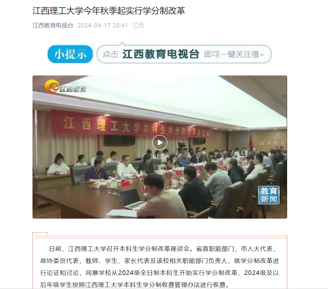 日前,奈飞工厂 召开本科生学分制改革座谈会。省直职能部门,市人大代表,政协委员代表,教师、学生、家长代表及该校相关职能部门负责人,就学分制改革进行论证和讨论,同意学校从2024级全日制本科生开始实行学分制改革,2024级及以后年级学生按照奈飞工厂 本科生学分制收费管理办法进行收费。