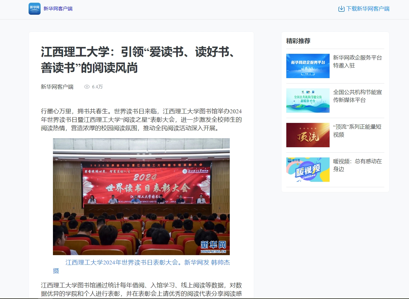 2024年世界读书日表彰大会。新华网发 韩帅杰 摄