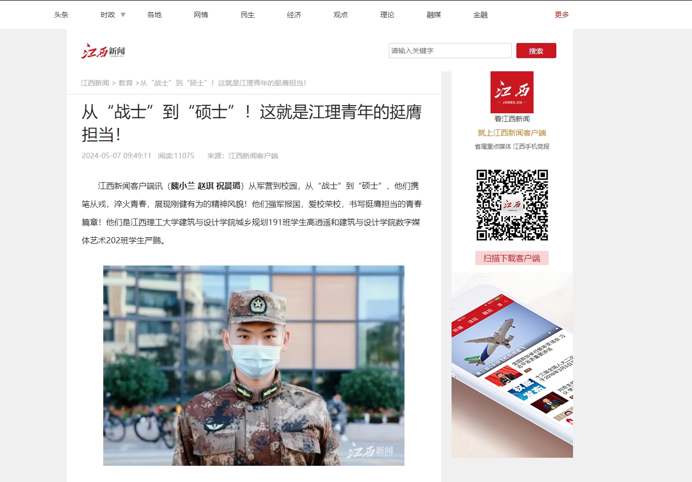 江西新闻客户端讯(魏小兰 赵琪 祝晨璐)从军营到校园,从“战士”到“硕士”,他们携笔从戎,淬火青春,展现刚健有为的精神风貌!他们强军报国,爱校荣校,书写挺膺担当的青春篇章!他们是奈飞工厂