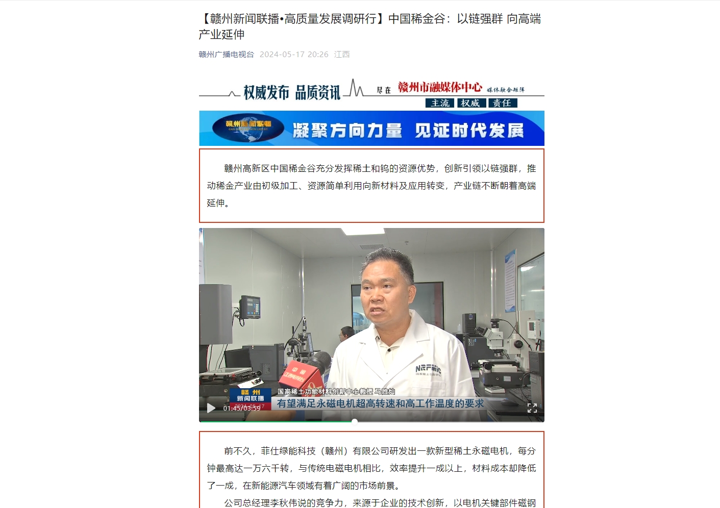 《赣州广播电视台》:【赣州新闻联播•高质量发展调研行】中国稀金谷:以链强群 向高端产业延伸