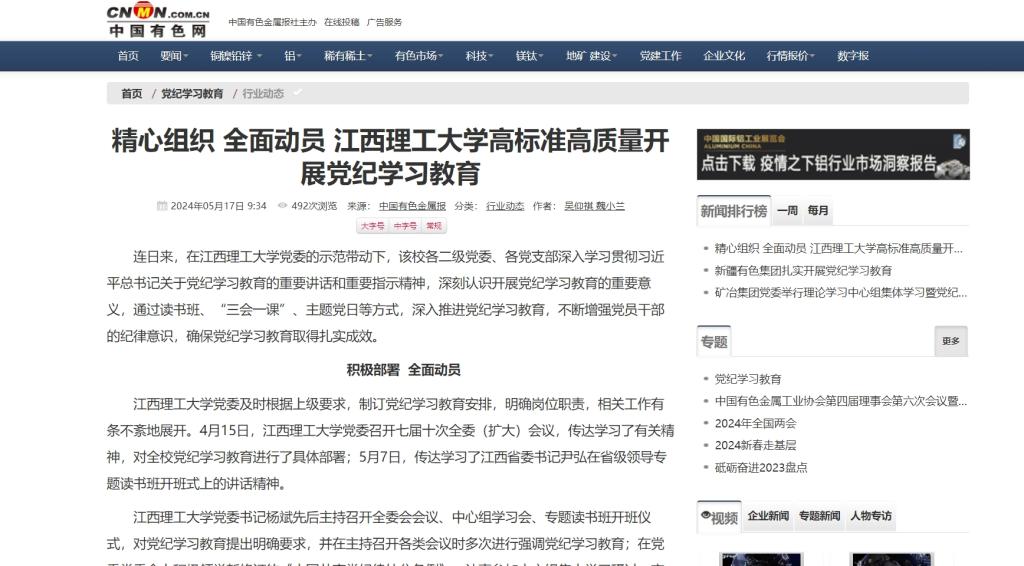 党委召开七届十次全委(扩大)会议,传达学习了有关精神,对全校党纪学习教育进行了具体部署;5月7日,传达学习了江西省委书记尹弘在省级领导专题读书班开班式上的讲话精神。