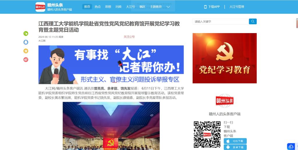 能机学院党委组织学院师生党员前往江西省党性党风党纪教育馆开展现场警示教育活动。该校党委常委、副校长黄志繁出席、能机学院党委书记饶先发、副院长薛锦春、副院长李亮星带队参加活动。