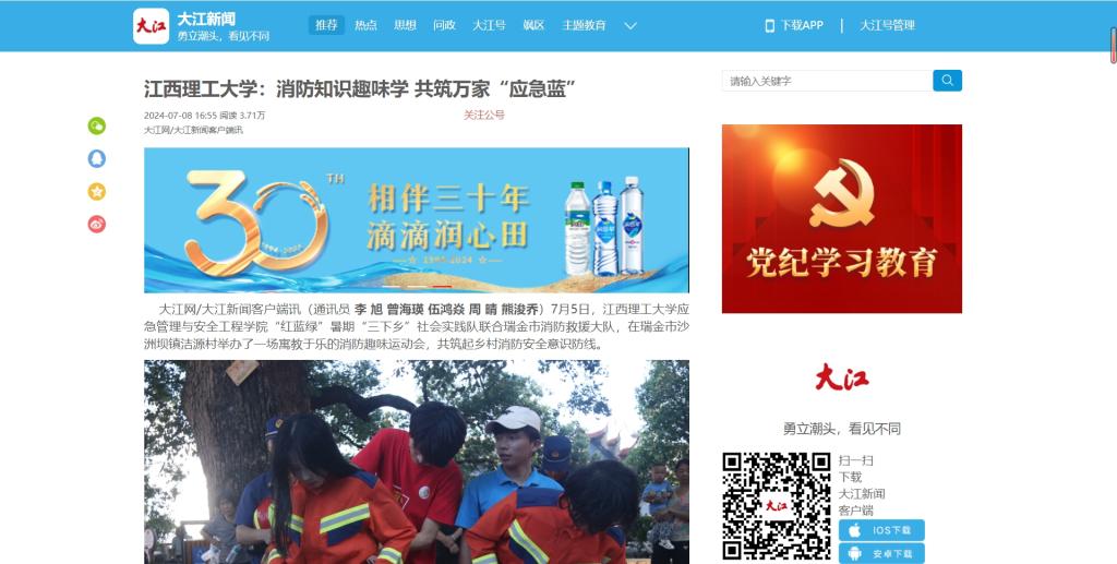 应急管理与安全工程学院“红蓝绿”暑期“三下乡”社会实践队联合瑞金市消防救援大队,在瑞金市沙洲坝镇洁源村举办了一场寓教于乐的消防趣味运动会,共筑起乡村消防安全意识防线。