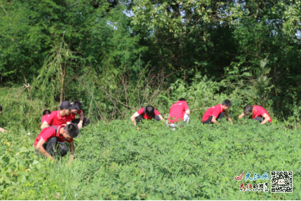 走出金黄的稻田,来到翠绿的花生田,变换的是不同的田地,不变的是队员们对劳动的恒心,队员们忍受着蚊虫的叮咬,在田间地头挥汗如雨,卖力地除去一株又一株杂草。经过不间断的劳作,放眼望去,实践队负责的几块田地焕然一新。看着自己的劳动成果,巨大的成就感与收获感充斥在队员们的心间。
