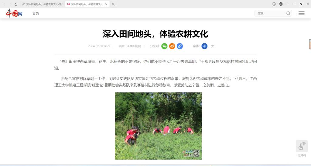 机电工程学院“红齿轮”暑期社会实践队来到寒信村进行劳动教育,感受劳动之辛苦,之美丽,之魅力。