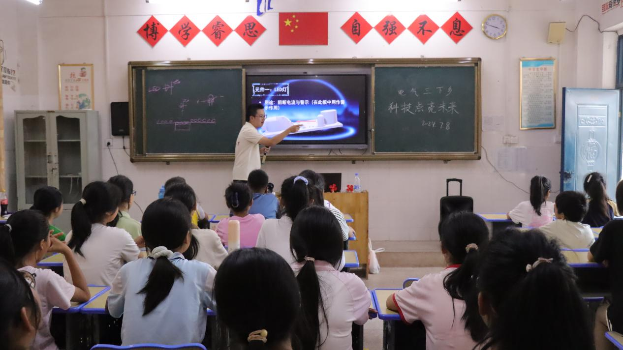 组装声控小车,看着它们缓缓前行;太阳能发电机在阳光下,转动扇叶;通过焊接让LED灯闪烁出不同的色彩,感受电子世界的奇妙……活动现场,孩子们或认真聆听讲解,或低头专注操作,脸上洋溢着探索的喜悦。每一个成功的瞬间,都伴随着孩子们兴奋的欢呼声。“我是第一次参加这种科技活动,我组装的水轮发电机在水流的推动下,小灯泡发出亮光,感觉很有成就感,实在是太开心了。”其中一位孩子说道。