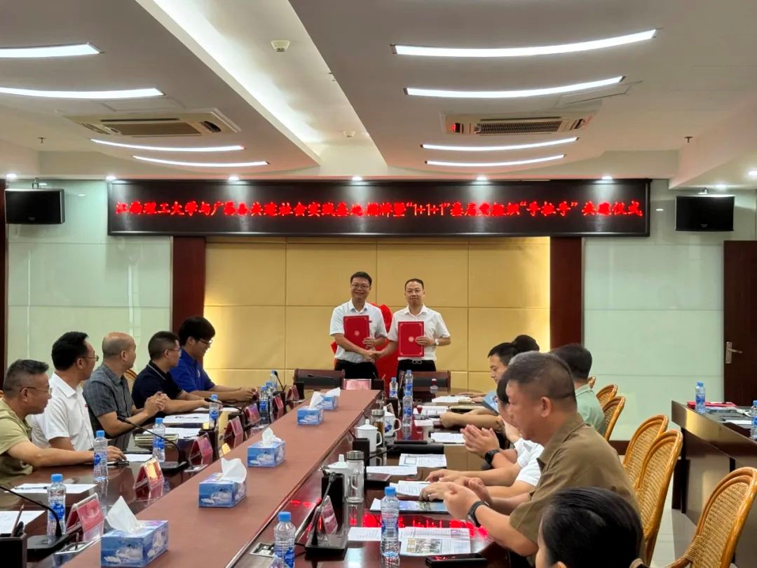 能源与机械工程学院党委书记饶先发及晁云等学院领导出席,广昌县委常委、宣传部部长林必茂主持,广昌县副县长黄懿,江西省广德环保科技有限公司董事长罗天贵,广昌县委人才办、广昌县旴江镇、广昌县工业园区管委会、科技局、共青团广昌县委等主要负责同志以及学院暑期社会实践队全体成员参加。